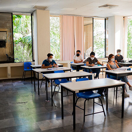 - Elige entre acudir al salón de clases o estudiar desde tu localidad.